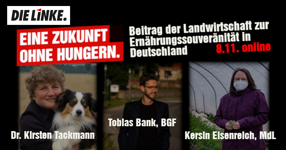 Dr. Kirsten Tackmann, agrarpolitische Sprecherin der Bundestagsfraktion, Kerstin Eisenreich MdL und Bundesgeschäftsführer Tobias Bank sprechen über Landwirtschaft heute und darüber wie wir unsere Landwirtschaft auf Zukunftskurs bringen. Dabei geht es sowohl um die kommunale Ebene und die Landebene als auch die Bundespolitik und die Europäische Ebene und den Einfluss der Gemeinsamen Europäischen Agrarpolitik (GAP) auf Deutschland. Die drei Genoss*innen bringen dabei ganz persönliche Erfahrungen und Expertise mit.